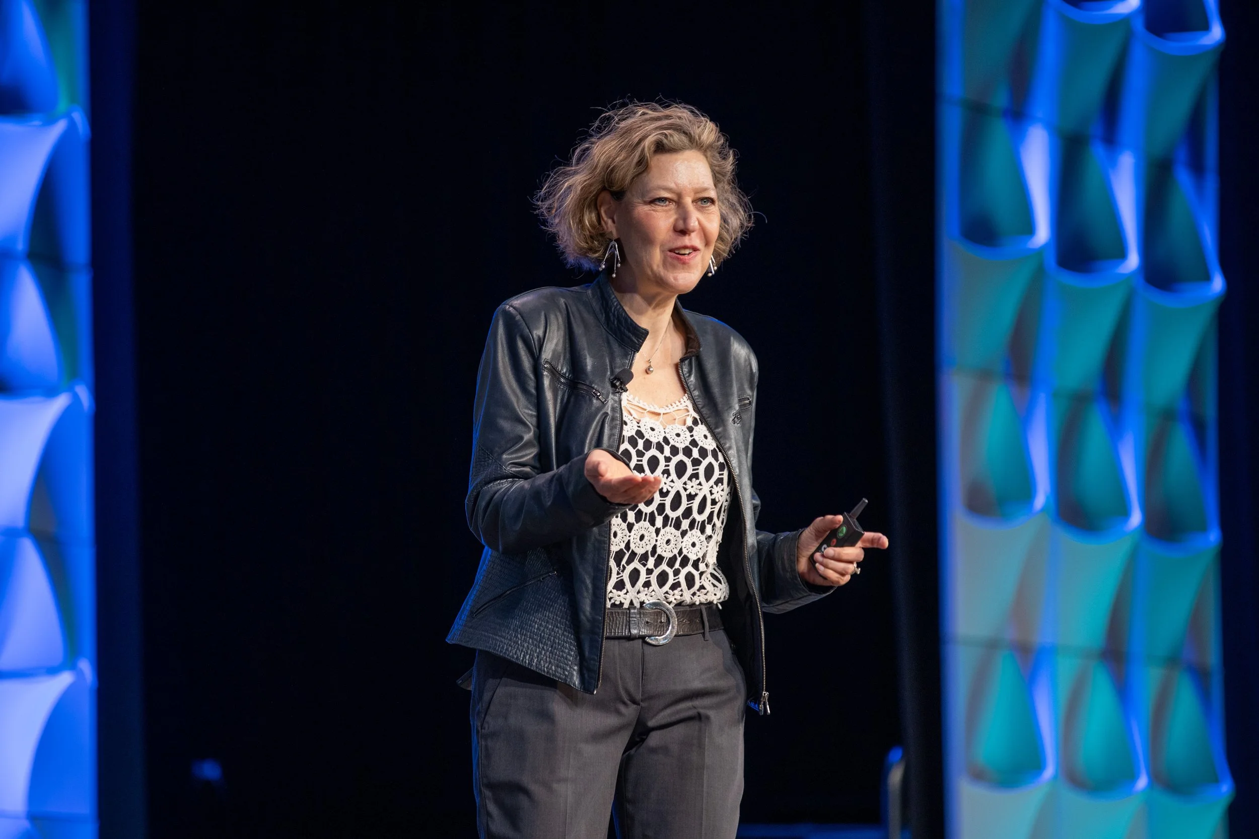 Yes. She tailors every keynote to align with an organization’s goals, industry and audience. She welcomes talking with key stakeholders and organizers of an event to ensure that the examples, tactics and stories she includes align with your group and will resonate with your audience.